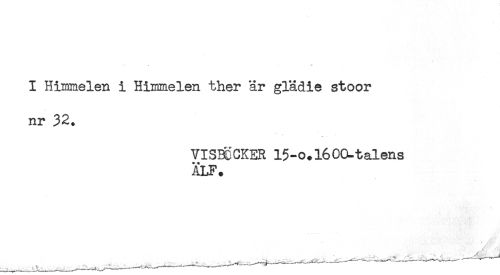 //// I Himmelen i Himmelen ther är glädie stoor //// nr 32. //// VISBCCKER 15-o.l60&-talens //// ÄLF. //// .t.* //// ____—-------—.-- ////