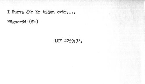 //// I Hurva där är tiden ovår..* + //// Högseröd (Sk) //// LUF 2259:34. ////