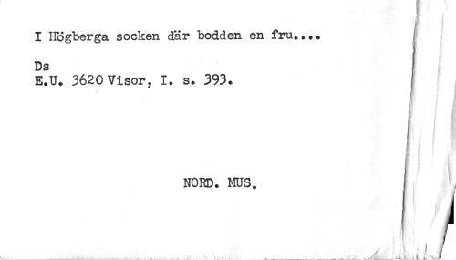 //// N } //// I Högberga socken där bodden en fru.... //// Ds I //// E.U. 3620 Visor, 1. s. 393. //// i'' f a //// NORD. MUS. j //// ............. , -__-__:_____^........._____.___—..t .'- A ////