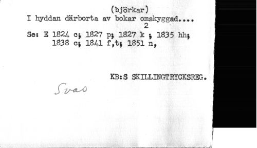 //// ^ bj orkar ^^^^^^ //// I hyddan därborta av bokar omskyggad.... //// Se: E 1824 c; 1827 p; 1827 k ; 1835 hh; //// 1838 c; 1841 f,t; 1851 n, //// KB:S SKILLH^GTRYCKSREG. //// * '* ////