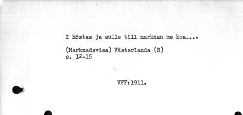 //// I höstas ja sulle till marknan me koa.... //// (Harknadsvisa) Västerlanda (B) //// s. 12-15 //// VFF:1911. ////