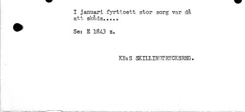 //// I januari fyrtioett stor sorg var då //// att skåda..... //// ^ Se: E 1843 z. //// KB:S SKILUNGT RYCKSREG. //// i //// ! //// ) //// ) //// ( ////
