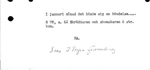 //// I januari månad det hände sig en händelse.... //// ^ B 78, s. 62 Skräddaren och skomakaren 6 str. //// kom. //// i //// RA. ////