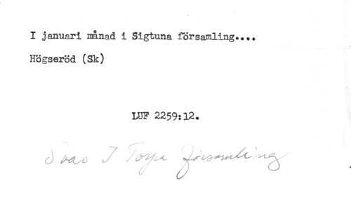 //// I januari manad i Sigtuna forsamling.... //// < //// Högseröd (Sk) //// LUF 2259:12. ////