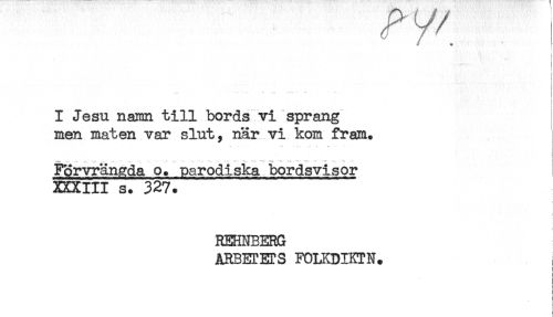 //// ! //// ! //// } //// i //// ! //// i //// i //// < //// -' - - ..... " ! //// i //// I Jesu namn till bords vi sprang //// men maten var slut, när vi kom fram. //// Förvrängda o. parodiska bordsvisor //// XXXIII s. 327. //// REHNBERG //// ARBETETS FOIXDIKTN. //// ! //// ) ////