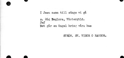 //// I Jesu namn till sängs vi ga //// * //// s. 264 Seglora, Västergtld. //// Jmf //// Det går en ängel kring våra hus //// ST30M. SV. VISOR 0 RAMSOR. //// - ////