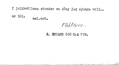 //// I julikvällens stunder en sång jag sjunga vill.. //// nr 161. ^ ^ //// mel.not. //// S. EDUARD 200 G:A VIS. ////