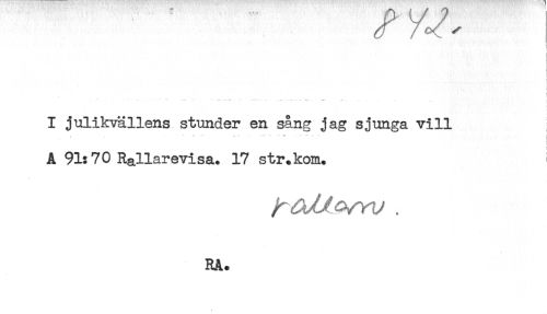 //// ! //// t //// r //// f //// I julikvällens stunder en sång jag sjunga vill //// " ' - ' ' ..... * " ' "* " * ! //// A 91:70 Rallarevisa. 17 str.kom. //// RA. ////