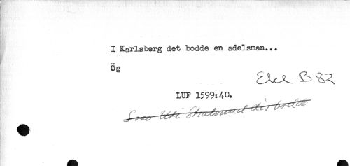//// R:' //// - //// -. - ... , //// - //// . //// I Karlsberg det bodde en adelsman... //// Cg //// LUF 1599:40. ////