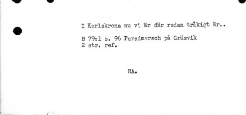 //// ! //// j //// t //// ^ I Karlskrona nu vi är där redan tråkigt är.. //// B 79:1 s. 96 Paradmarsch på Gräsvik //// 2 str. ref. //// Rå. //// (______ _ /.......^ ////