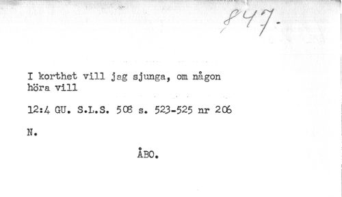 //// v //// * / * //// i //// < //// i //// ! //// I korthet vill jag sjunga, om någon //// höra vill //// . * ^ . //// 12:4 GU. S.L.S. 506 s. 523-525 nr 206 //// N. //// ÅBO. //// i //// i ////