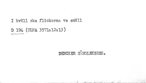 //// I kväll ska flickorna va snäll //// D 194 (ULKA 3571:12:33) //// i ..... //// DENCKER SÅNGLEKSREG. //// % _ _____ t ^ ^ -- - ^^ ^ * ^ > ,_____ , !___ ' _ ////