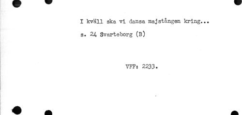 //// I kväll ska vi dansa majstången kring... //// s. 24 Svarteborg (B) //// VFF: 2233. //// t //// ! //// * //// ^^ ^ A ^ ////
