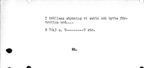 //// . I kvällens skymning vi sutto och bytte för- //// troliga ord.... //// B 70:3 s. 9-........9 str. //// & t ////