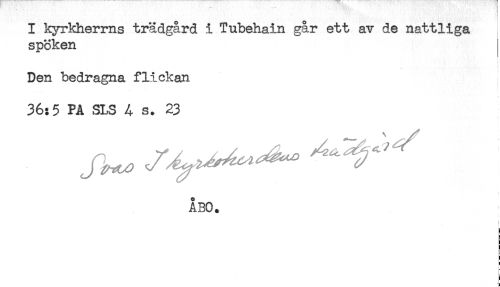 //// I kyrkherrns trädgård i Tubehain går ett av de nattliga //// spöken //// Den bedragna flickan //// 36:5 PA SDS A s. 23 //// ÅBO. //// i //// i //// ! ////