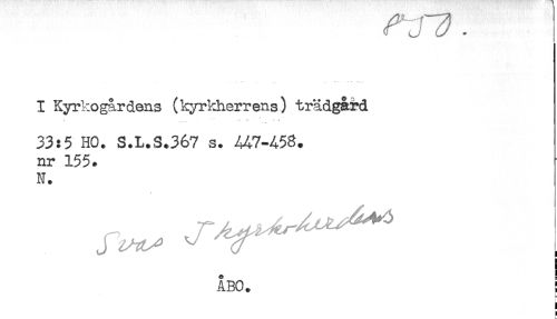 //// I Kyrkogårdens (kyrkherrens) trädgård //// . * .-. .< .. ? i //// 33:5 HO. S.L.S.367 s. 4Å7-458. //// nr 155. //// N. //// ÅBO. I //// i ////