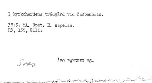 //// 38:5. MA. Uppt. E. Aspelin. //// 33, 155, XIII. //// ÅBO RANCKEH MS. ////