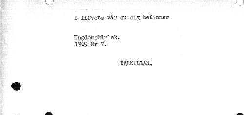 //// I lifvets vår du dig befinner //// . . //// Ungdomskärlek. //// 1909 Nr 7. //// DALKULLAN. ////