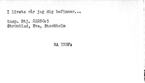 //// I livets vår jag dig befinner... //// i //// insp. Rtj. 22280:5 //// Strömblad, Eva, Stockholm //// RA INSP* //// i //// ' //// t //// L //// i ////