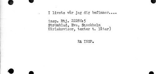 //// I livets vår jag dig befinner.... //// insp. Rtj. 22280:5 //// Strömblad, Eva, Stockholm //// Kärleksvisor, texter t. låtar) //// Rå INSP. ////