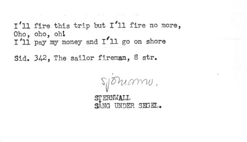 //// 1*11 fire this trip but 1*11 fire no more, //// Oho, oho, oht ^ //// I^11 pay my money and I 11 go on shore //// .. —- * * - — * - .. i* //// Sid. 3A2, The sailor fireman, S str. //// ST ERN!VALL //// SANG UNDER SESEL. ////