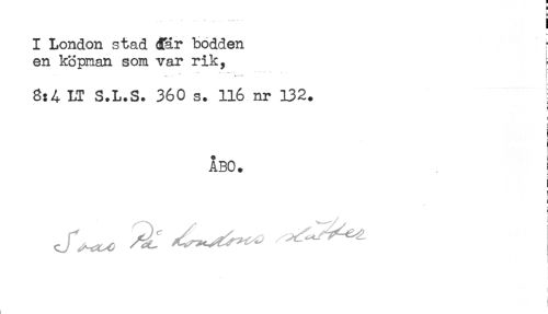 //// I London stad där bodden //// ! //// en köpman som var rik, //// 3:4 LT S.L.S. 360 s. 116 nr 132. //// f //// * //// ÅBO. i //// { //// ! //// i ////