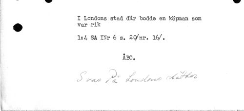 //// I Londons stad där bodde en köpman som //// ^^ var rik //// 1:4 SA INr 6 s. 2(/nr. 16/. //// ÅBO. //// :' * //// t, ,. ^........ _ . _ , ^ , _ . ////