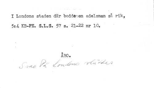 //// I Londons staden där boddenen adelsman så rik, //// * *" * . //// ! //// 5:4 KB-PE. S.L.S. 57 s. 21-22 nr 10. //// ÅBO. ////
