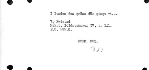 //// I lunden den gröna där gingo vi... //// Vg Fristad //// Mskpt. Söldatsån^er IV, s. 141. //// E.U. 282 04. //// K-'*' //// NORD. MUS. ////