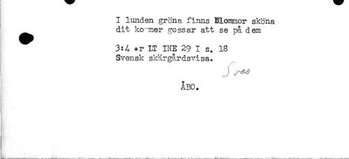 //// I lunden gröna finns Blommor sköna //// _ dit ko mer gossar att se på dem //// 3:4 +r LT INE 29 I s. 18 //// Svensk skärgårdsvisa. //// ÅBO. //// ) //// ) ////
