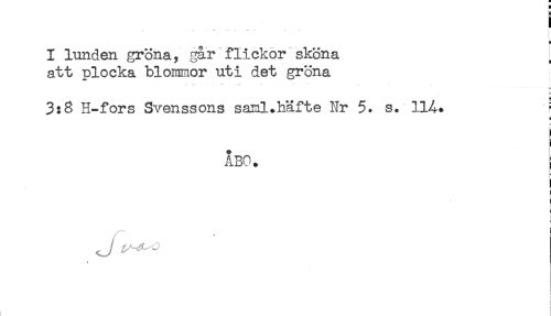 //// I lunden gröna, går flickor sköna //// att plocka blommor uti det gröna //// H //// 3:8 H-fors Svenssons saml.häfte Nr 5. s. 114* - //// < //// ABC. //// < //// * //// t //// t ////