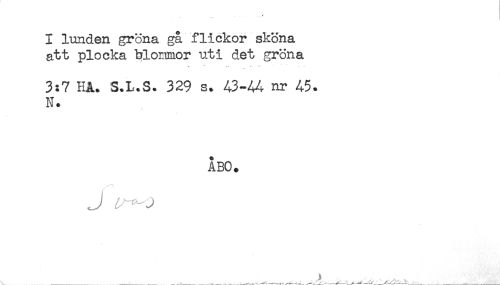 //// I lunden gröna gå flickor sköna //// att plocka blomior uti det gröna //// . * ^- * * - - - //// 3:7 HA. S.L.S. 329 s. A3-44 nr 45. //// N. //// ÅBO. ////