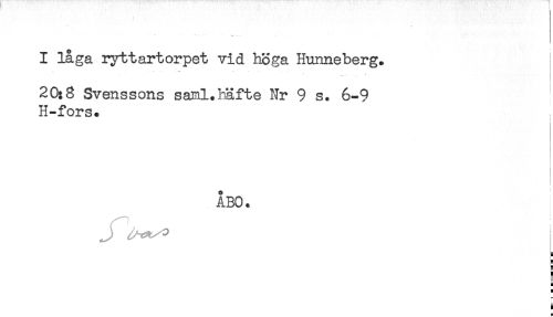 //// - - .. //// I låga ryttartorpet vid höga Hunneberg. //// 20:8 Svenssons saml. häfte Nr 9 s. 6-9 //// H-fors. //// < //// i //// ÅBO. //// - - ^ //// H //// H //// g //// ] //// H //// H ////