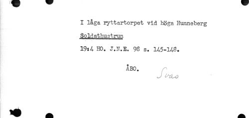 //// I låga ryttartorpet vid höga Hunneberg //// . ........ //// Soldathustrun //// 19:4 HO. J.N.E. 98 s. 145-148. //// ÅBO. //// 1H ////