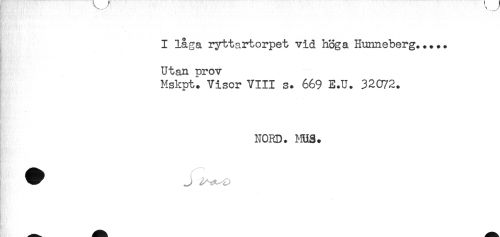 //// I låga ryttartorpet vid höga Hunneberg..... //// Utan prov //// Mskpt^ Visor VIII s. 669 E.U. 32072. //// NORD. MUS. //// ^^ J ////