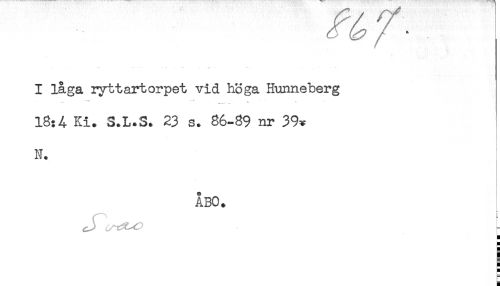 //// ^- //// I låga ryttartorpet vid höga Hunneberg //// ** **** i. - //// 18:4 Ki. S.L.S. 23 s. 86-89 nr 39? //// N. //// ÅBO. //// . //// H ////