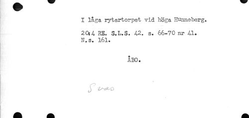 //// I låga rytartorpet vid höga Hunneberg. //// 20:4 RE. S.L.S. 42. s. 66-70 nr 41. //// N.s. 161. //// . //// ÅBO. //// J c //// * ////