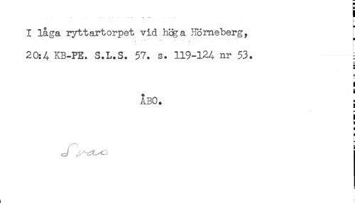 //// I låga ryttartorpet vid M^a Hömeberg, //// - - - * " -- ....., r //// 20:4 KB-PE. S.L.S. 57. s. 119-124 nr 53. //// < //// i //// ÅBO. s //// H //// r //// ! //// ^ ! ////