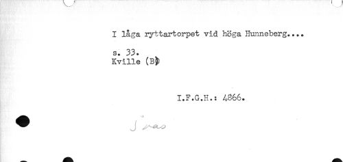 //// I låga ryttartorpet vid höga Hunneberg.... //// s. 33. //// Kville (B$) //// * //// I.F.G.H.: A866. //// ^ J //// B ////