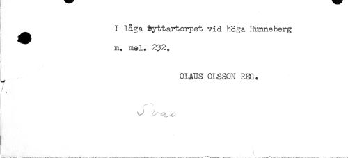 //// I låga iyttartorpet vid höga Hunneberg //// m. mel. 232. //// ^ OLAUS OLSSON REG. //// j ^ ////