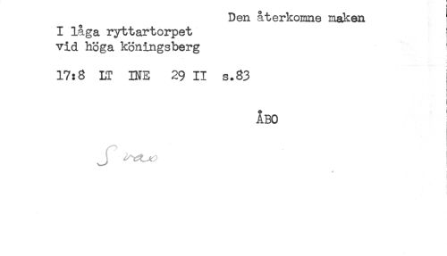 //// Den aterkomne maken //// I låga ryttartorpet //// vid höga köningsberg //// 17:8 LT INE 29 II s.83 //// I //// o ' //// ABO //// J j ////