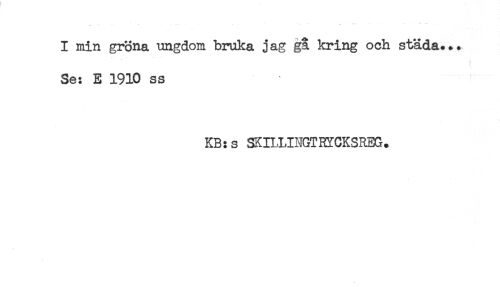 //// I min gröna ungdom bruka jag gå kring och städa... //// Se: E 1910 ss //// KB:s SXILLINGTHTCKSREG. ////