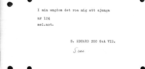 //// I min ungdom det roa mig att sjunga //// nr 124 //// mel.not. //// t //// S. EDUARD 200 G:A VIS. ////