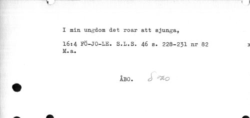 //// I min ungdom det roar att sjunga, //// 16:4 FÖ-JO-LE. S.L.S. 46 s. 228-231 nr 82 //// M. a. //// ÅBO. ^ ////