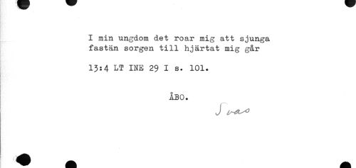 //// I min ungdom det roar mig att sjunga //// fastän sorgen till hjärtat mig går //// 13:4 LT INE 29 I s. 101. //// ÅBO. //// J ^^^ ////