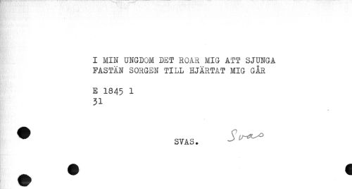 //// I MIN UNGDOM DET ROAR MIG ATT SJUNGA //// FASTÄN SORGEN TILL HJÄRTAT MIG GÅR //// E I845 1 //// 31 //// t //// * SVAS. - ////