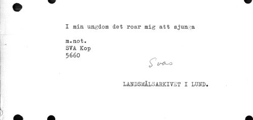 //// I min ungdom det roar mig att sjunga //// m.not. //// SVA Kop //// 5660 //// LANDSIsåÅLSARKIVET I LUND. //// ) ////