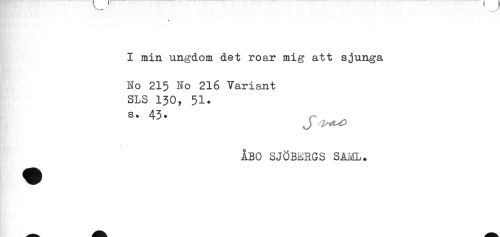 //// I min ungdom det roar mig att sjunga //// No 215 No 216 Variant //// SLS 130, 51. //// * * 43' J //// ÅBO SJÖBERGS SAIA. ////