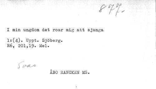 //// * //// f //// I min ungdom det roar mig att sjunga //// < //// 1:(4). Uppt. Sjöberg. //// R6, 201,19. Mel. //// j . //// ÅBO RANCKEN MS. //// * ////