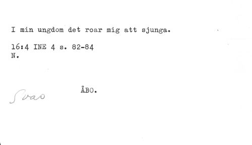 //// I min ungdom det roar mig att sjunga. //// 16:4 INE 4 s. 82-84 //// N. //// ÅBO. //// L ////